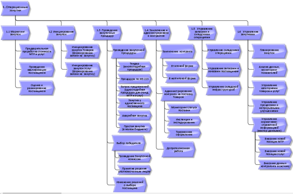 Понимая окружение (контекст) процесса операционных закупок, декомпозируем процесс на 6 процессных категорий (групп процессов), как показано на рис. 2.