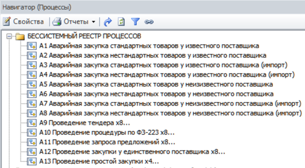 Рис. 4. Фрагмент реестра процессов закупок без архитектурного решения