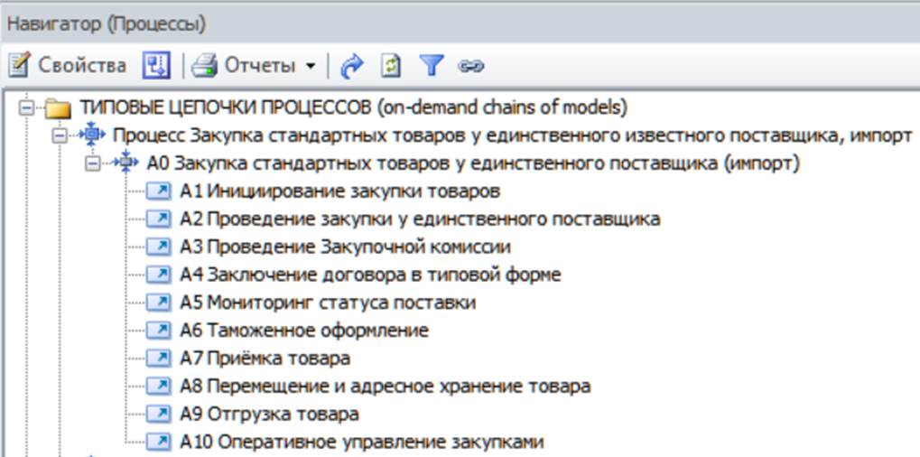В реестре обычно для таких процессов завожу папку «Типовые цепочки процессов (on-demand chains of models)», как показано на рис. 7.