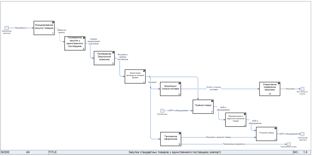 Рис. 5. Сценарий (процесс на ссылках) закупки стандартных товаров у единственного поставщика по импорту в нотации IDEF